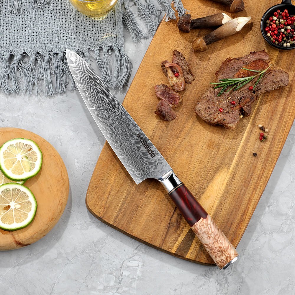Gyuto Executive Chef Knife with Red Resin Handle
