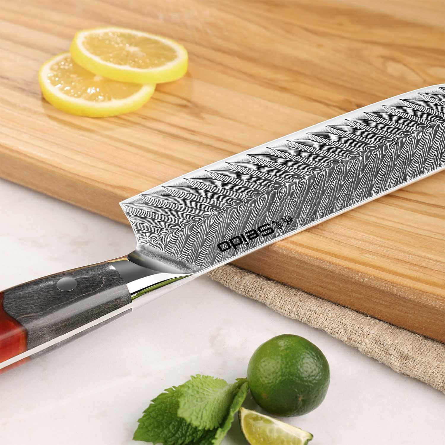 - Durable Damascus construction: 73 stainless layers resist corrosion and deliver long-lasting sharpness.