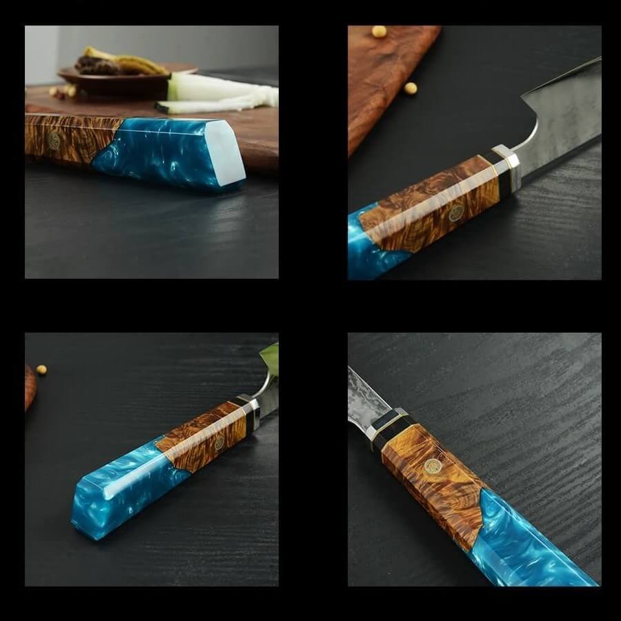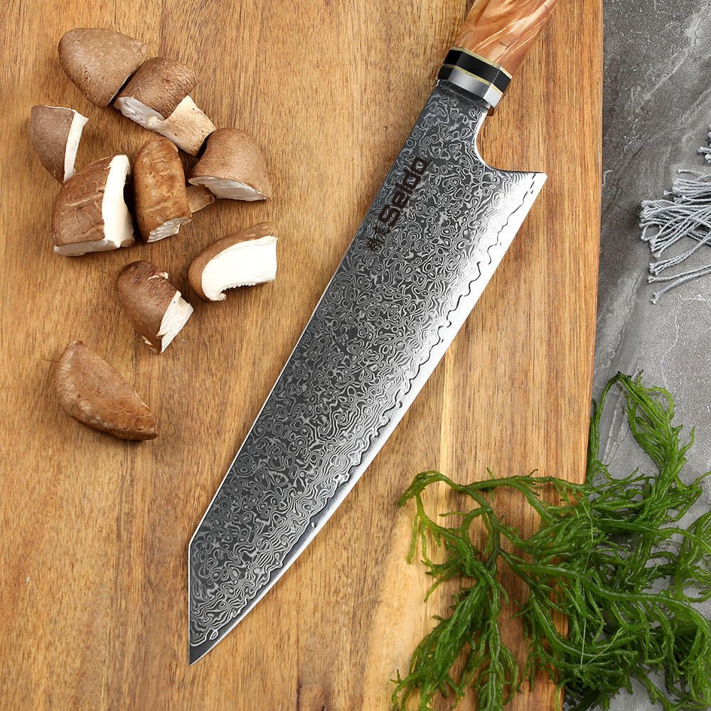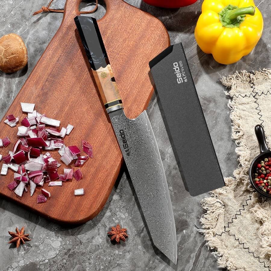 Discover the superior quality of SEIDO Kiritsuke Japanese chef knife. This expertly-crafted knife boasts a remarkable 8.5 Damascus steel blade. renowned for its unparalleled sharpness and precision. From tip to heel. this exceptional tool is engineered for flawless cutting. making it the perfect companion for preparing delicious meals.